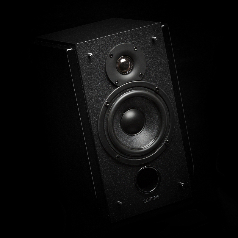 不屈从于传统造型的束缚,漫步者R1800TIII采用了不规则的梯形外形设计,棱角鲜明,线条骨感十足,极具个性。这种不规则箱体的设计绝非只是外观上的标新立异,从声学原理而言,不规则箱体设计可以减少箱体内的驻波,从而降低谐振,使音质得以提升。而箱体前障板采用的小仰角设计,则是考虑到用户对此类书架箱的近场聆听习惯,经过精细计算的倾斜角度,使音乐定位更加精准,听感也更为出色。