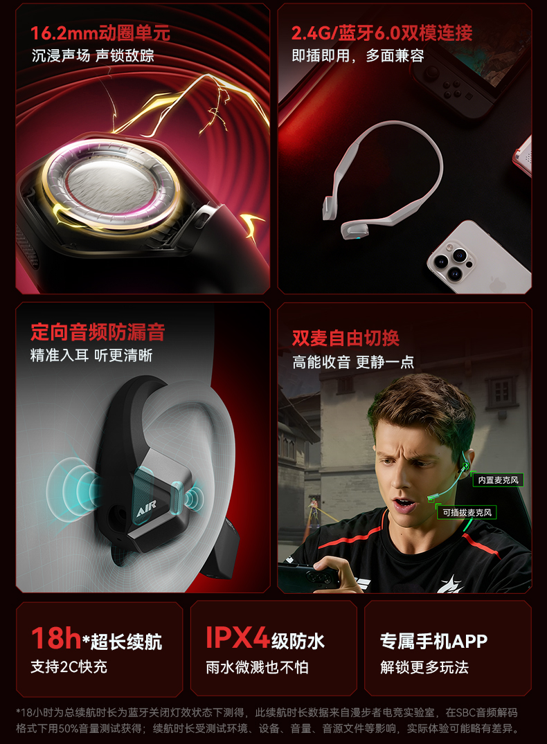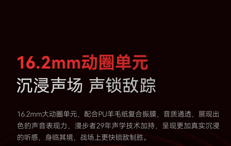 • 16.2mm动圈单元,沉浸声场,声锁敌踪