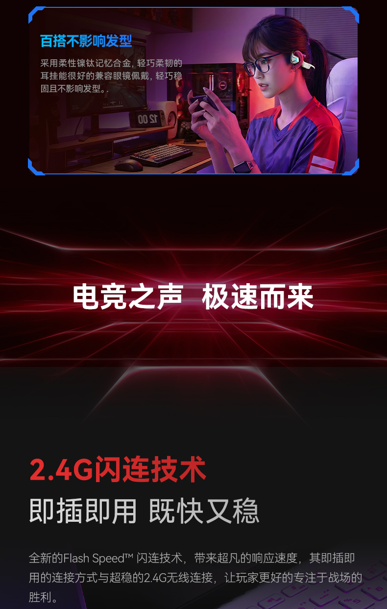 • Flash Speed2.4G闪连技术,既快又稳,分毫不让