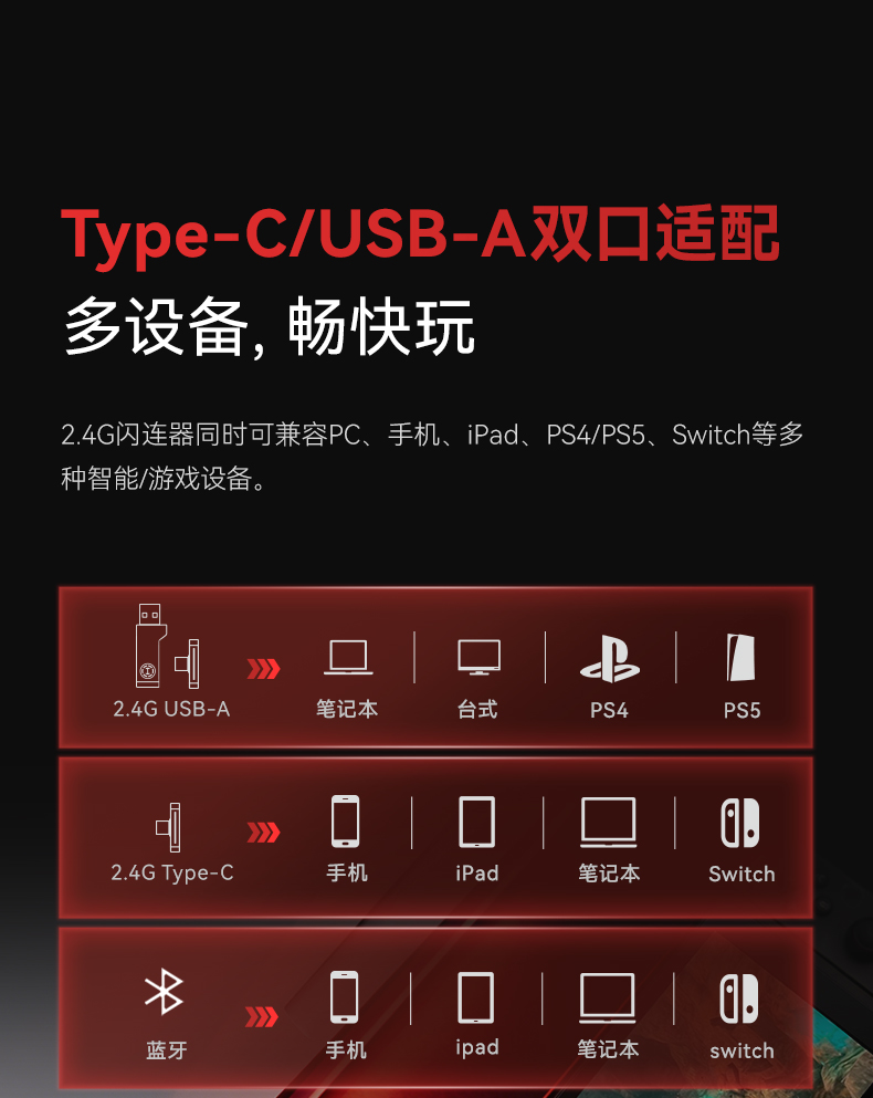 • 2.4G/蓝牙双模连接,极速体验,兼容并蓄