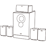 低音箱 x 1,中置卫星箱 x 1,后置环绕卫星箱 x 2,前置卫星箱 x 2